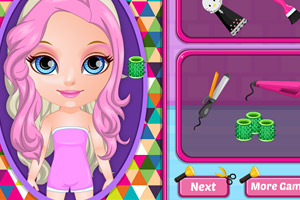 游戏介绍:可爱的芭比宝贝最喜欢打扮自己的头发了,看!她今天又把自己的头发打扮的花枝招展的,看上去蛮有个性的哦!